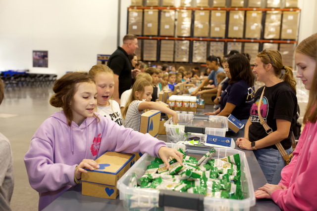 “Children have a special kind of love that’s untainted and undeniable,” said Laura Hernandez, Prosper mom and president of a local children’s ministry from The Church of Jesus Christ of Latter-day Saints. She was helping a group of about seventy kids from her ministry celebrate Global Youth Service Day. They gathered at the Children’s Hunger Fund warehouse in Frisco on Saturday to pack boxes of food for children in the community.