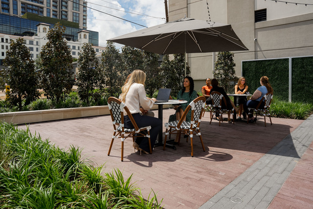 The space was thoughtfully designed to feel flexible and inviting, offering an alternative to traditional indoor venues. It can easily shift from corporate gatherings and brand activations to wellness programming and social events, all while maintaining a relaxed, approachable atmosphere.